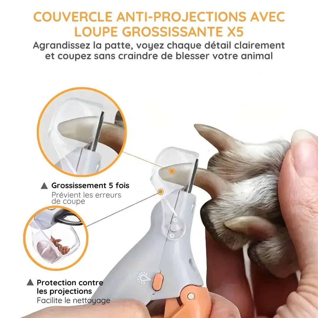 Coupe-ongles avec lumière LED et loupe pour animaux de compagnie